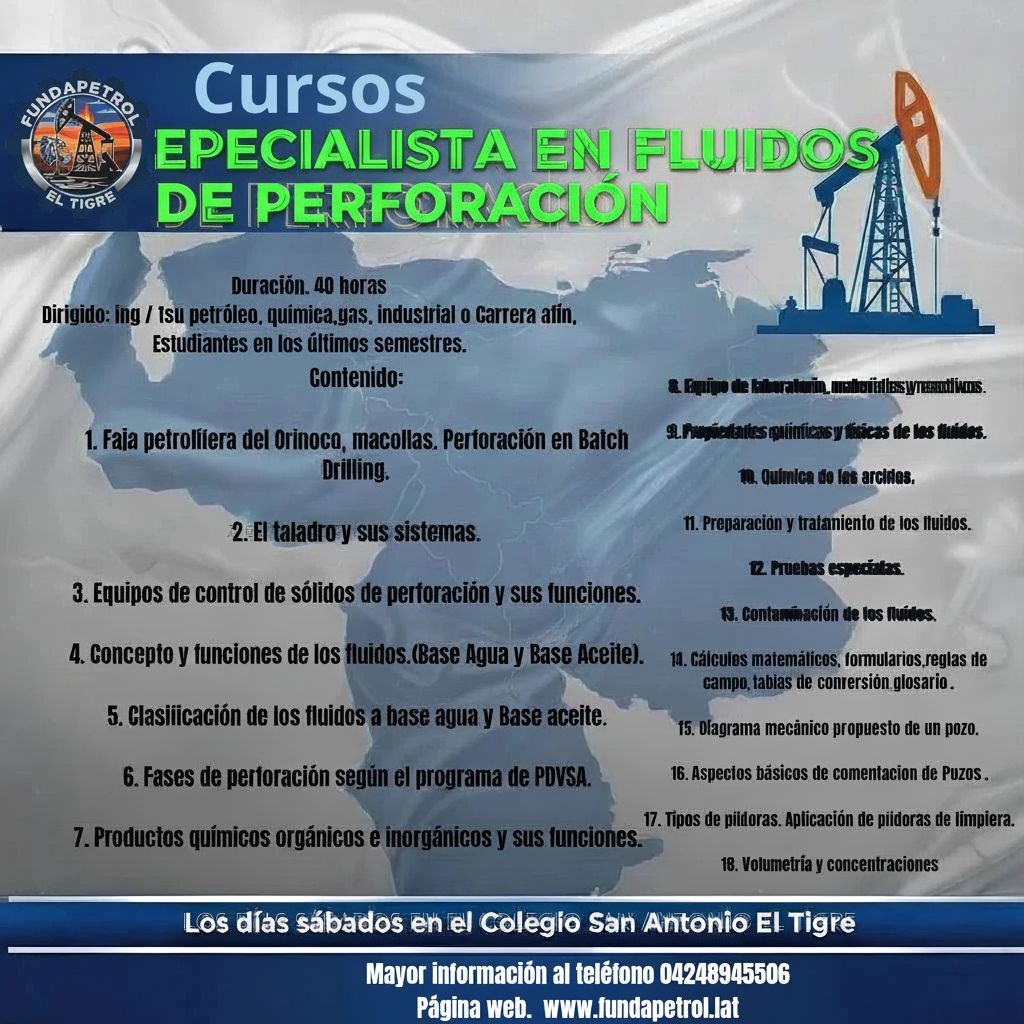 Abiertas inscripciones en El Tigre para el curso Especialista en Fluidos de Perforación